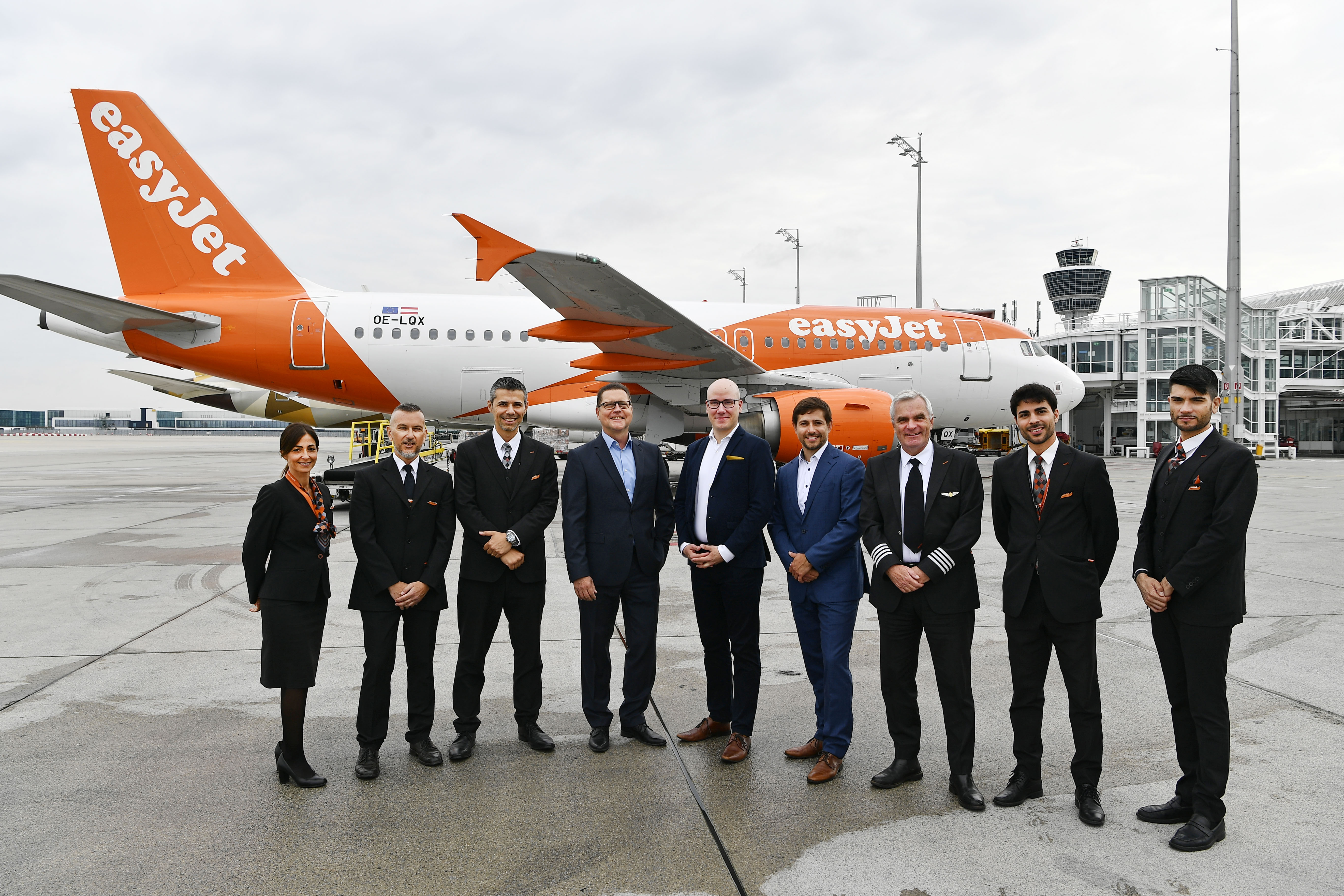 Stephan Erler und easyJet Crew am Flughafen München.jpg